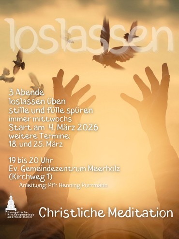 Dabei hilft der große Raum der Liebe und Hoffnung Gottes. Dort können wir wenigstens für die Zeit der Meditation Lasten ablegen und Aufatmen.